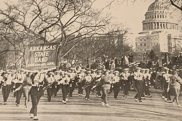 In 1946, the A-State Bands resumed with 26 members and were led by Director of Bands, James Patty. The bands performed in a number of different venues including the Memphis Cotton Carnival Parade. Some of the traditional elements of our pregame performances which are still used today began to emerge during this period. Kenneth Appleton became the Director of Bands in 1950 and in 1952 the marching band participated in the New Orleans Mardi Gras Parade.